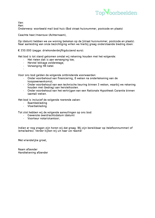 Onderwerp: voorbeeld mail bod huis (Bod straat huisnummer, postcode en plaats)