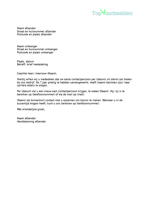 vaste contactpersoon per (datum) uit dienst zal treden bij ons bedrijf. Na 7