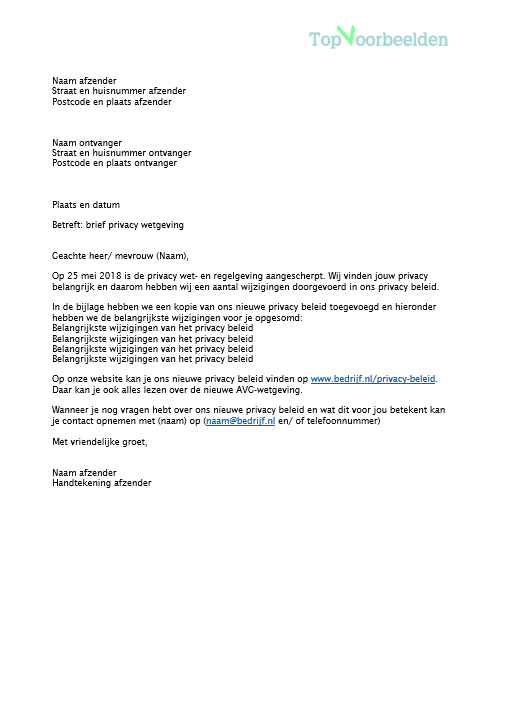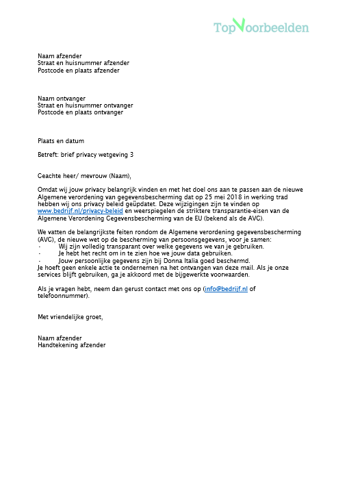 Brief privacy wetgeving, 3 voorbeeld brieven om mensen te informeren over de nieuwe privacy wetgeving en wat dat voor hen betekent.