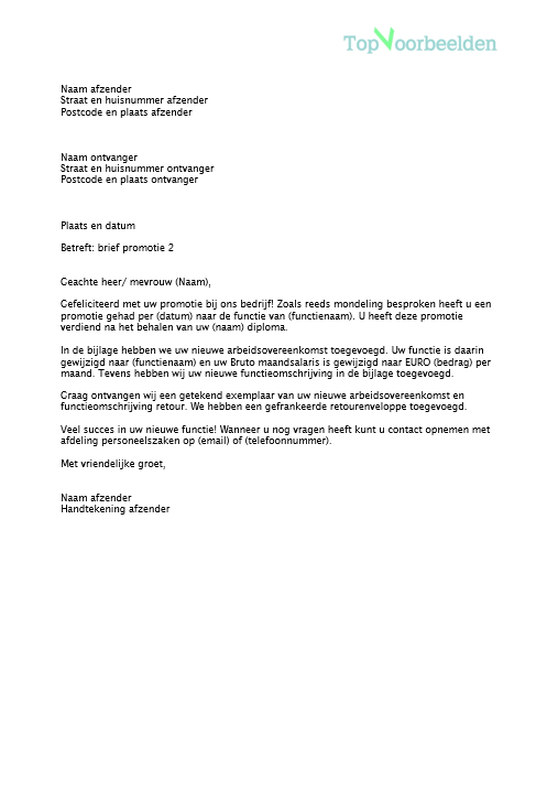 Brief promotie, 3 voorbeeld brieven voor het geven van een promotie aan een medewerker. Bekijk en download de gratis voorbeelden.