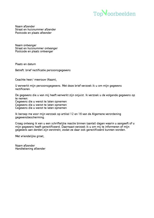 deze brief verzoek ik u om mijn gegevens rectificeren.