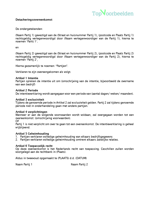 Bekijk hieronder de voorbeeld intentieverklaring. Bij twijfel raden wij aan om een jurist in te schakelen om de intentieverklaring af te sluiten.